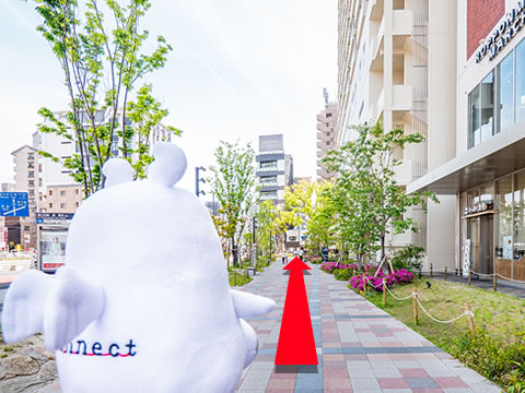 (まっすぐ進むと道路の東側にセンターのあるビルが見えてきます)